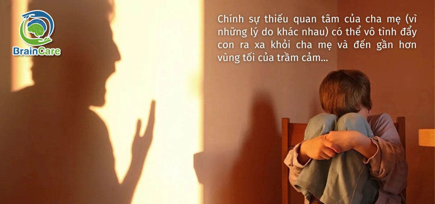 Đối với cha mẹ, những điều con đang trải qua có thể chỉ là những vấn đề nhỏ bé giữa bao bộn bề lo toan. Nhưng cha mẹ đâu biết rằng, trong thế giới nội tâm của con, những điều tưởng như vụn vặt ấy lại là những cơn khủng hoảng thật sự ghê gớm. Là những tiếng gào thét không lời, là cảm giác mắc kẹt trong một căn phòng không lối thoát và cũng là nỗi đau không tên cứ ngày một lớn dần bên trong một tâm hồn non nớt. Chính sự thiếu quan tâm của cha mẹ (vì nhiều lý do khác nhau) trước những cảm xúc, suy nghĩ của con có thể vô tình đẩy con ra xa khỏi chúng ta và đến gần hơn vùng tối của trầm cảm – nơi con cảm thấy mình là người vô hình, vô ích và hoàn toàn cô độc.